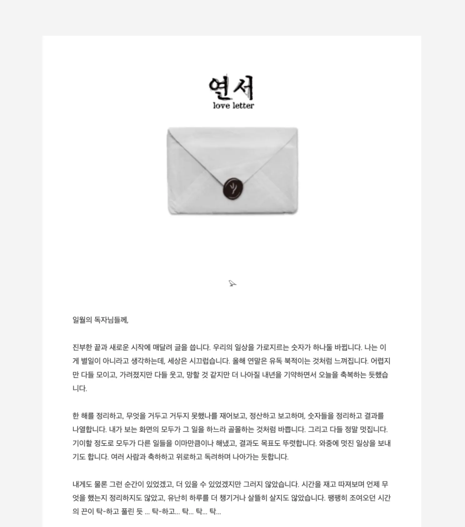 매월 1일, 안부를 전하는 마음으로 보내는 편지 <연서loveletter>