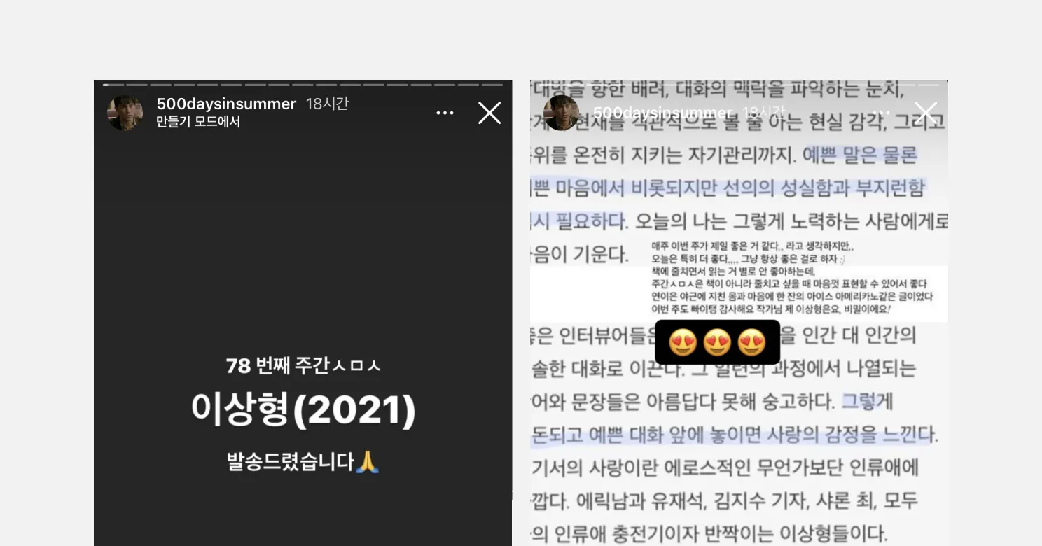 인스타그램(@500daysinsummer)으로 구독자와 소통하는 주간ㅅㅁㅅ