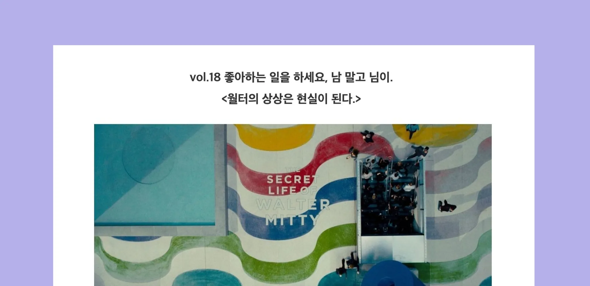 세 에디터의 공통 밑천 영화. 서로 쓰겠다고 앞다퉜던 <월터의 상상은 현실이 된다>를 소개했어요.
