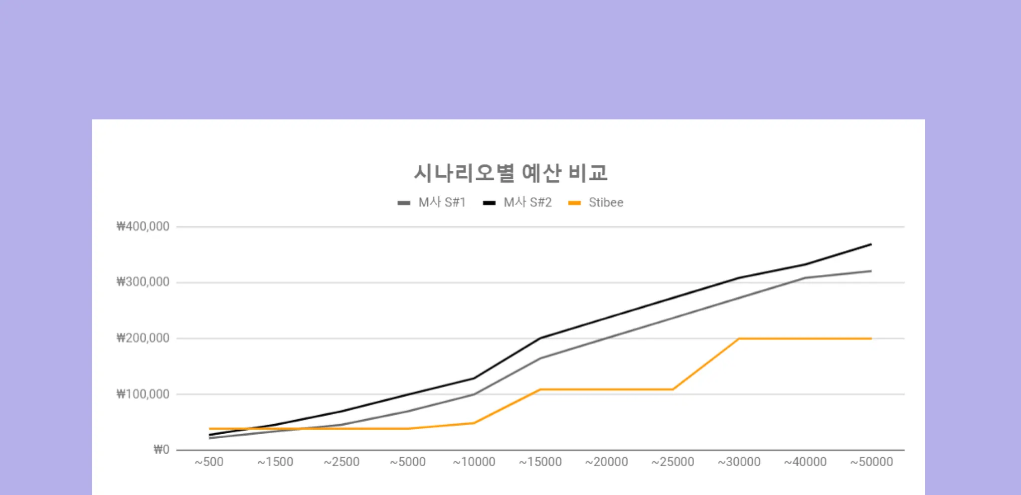 두 번째로, 구독자가 늘어날수록 m사의 서비스 이용료가 급격하게 올라가더라고요. 뉴스레터를 사이드 프로젝트로 하고 있기 때문에 요금제 또한 무시할 수 없었는데, 스티비는 합리적인 이용료로 사용할 수 있다는 걸 알게 되었어요. 아직 m사의 서비스를 사용하고 있었다면, 현재 구독자 수 기준으로 약 2-3배 비싼 서비스 이용료를 내고 있었을거예요.