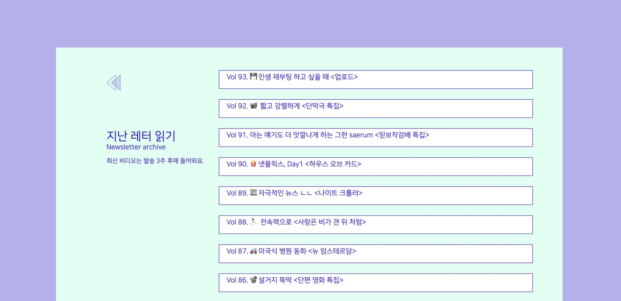 뉴스레터를 시작할 때 에디터 셋이서 약속한 게 있어요. 재미를 위해 시작한 일이니까 지치지 말고, 꾸준하게 하자고요. 저희는 욕심이 없습니다. 처음 뉴스레터를 시작할 때도 목표 구독자 수가 50명이었어요. 의리로 구독해줄 지인의 합계였죠. 초기에는 최고의 작품을 추천한다기 보다, '우리의 궤적을 남기고, 누군가에게 공유한다.'라는 의미가 더 컸던 것 같아요.