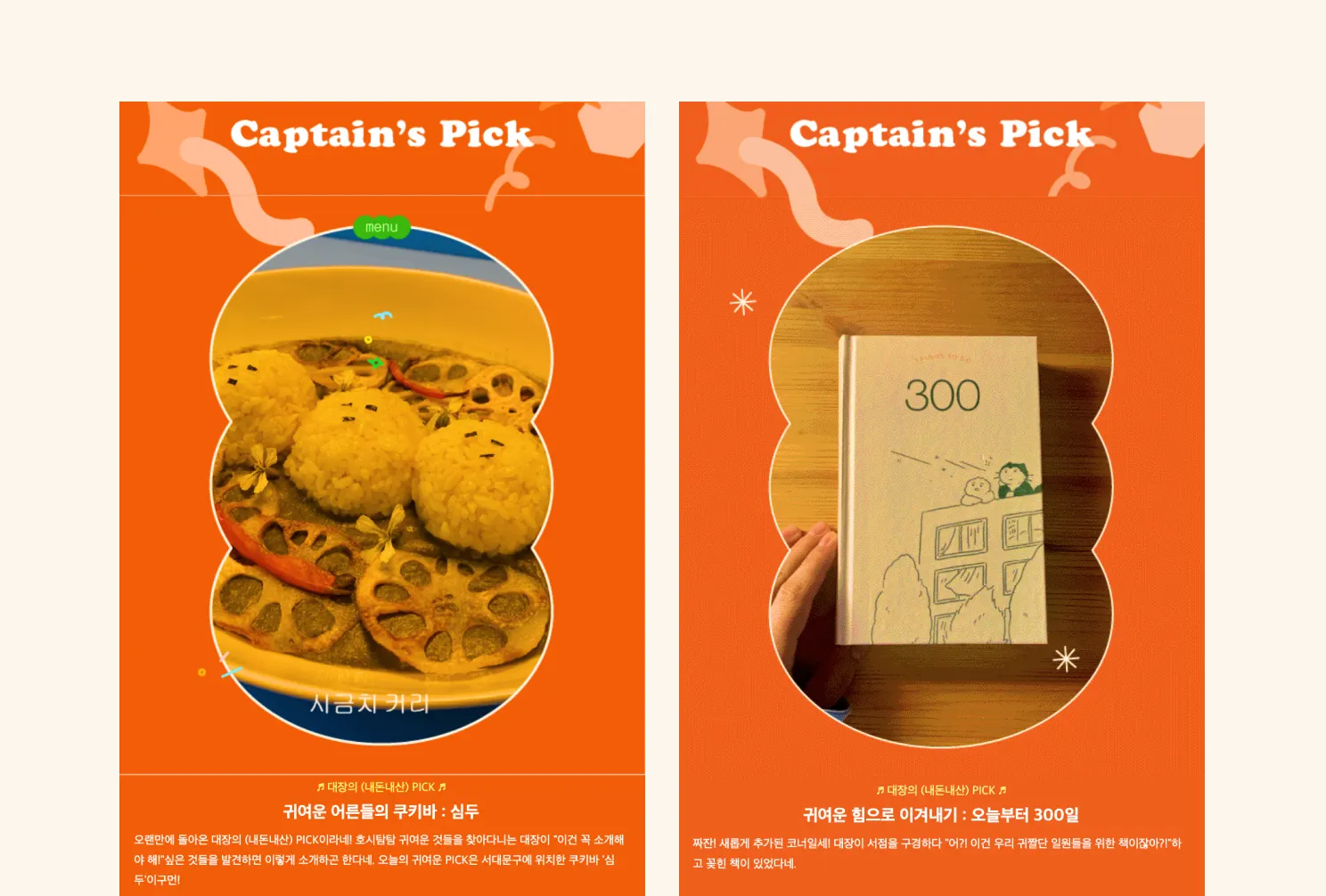 자연스럽게 월요병을 물리칠 수 있는 다양한 방법을 콘텐츠화 하고 있습니다. 오늘이 월요일이라는 걸 잊을 만큼 두근거리는 미션을 준다거나, 힘들 때 보면 스트레스가 스르르 녹는 짤방을 보내주는 방식입니다. 최근에는 “어?! 이거 우리 일원들도 좋아할 것 같은데?”하는 귀여운 책을 발견해 ‘대장의 PICK’이라는 이름으로 추천하기도 했습니다.