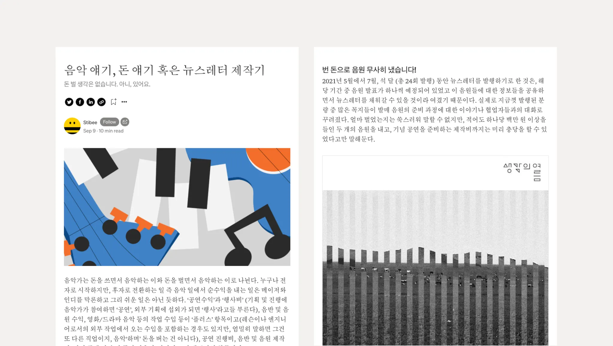 점점 많은 음악가들이 음악과 관련된 콘텐츠를 공유하고, 이를 통해 그에 걸맞는 수익을 얻어 창작 작업에 보탬했으면 좋겠습니다. 저는 뉴스레터를 통해 번 돈으로 무사히 음원을 낼 수 있었거든요.