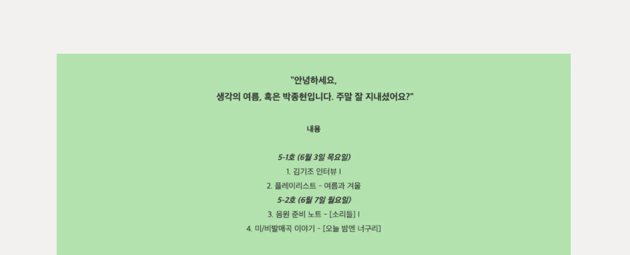 다른 채널에서는 공개하지 않았던 이야기들을 담아낸 유료 뉴스레터 <여름곁>