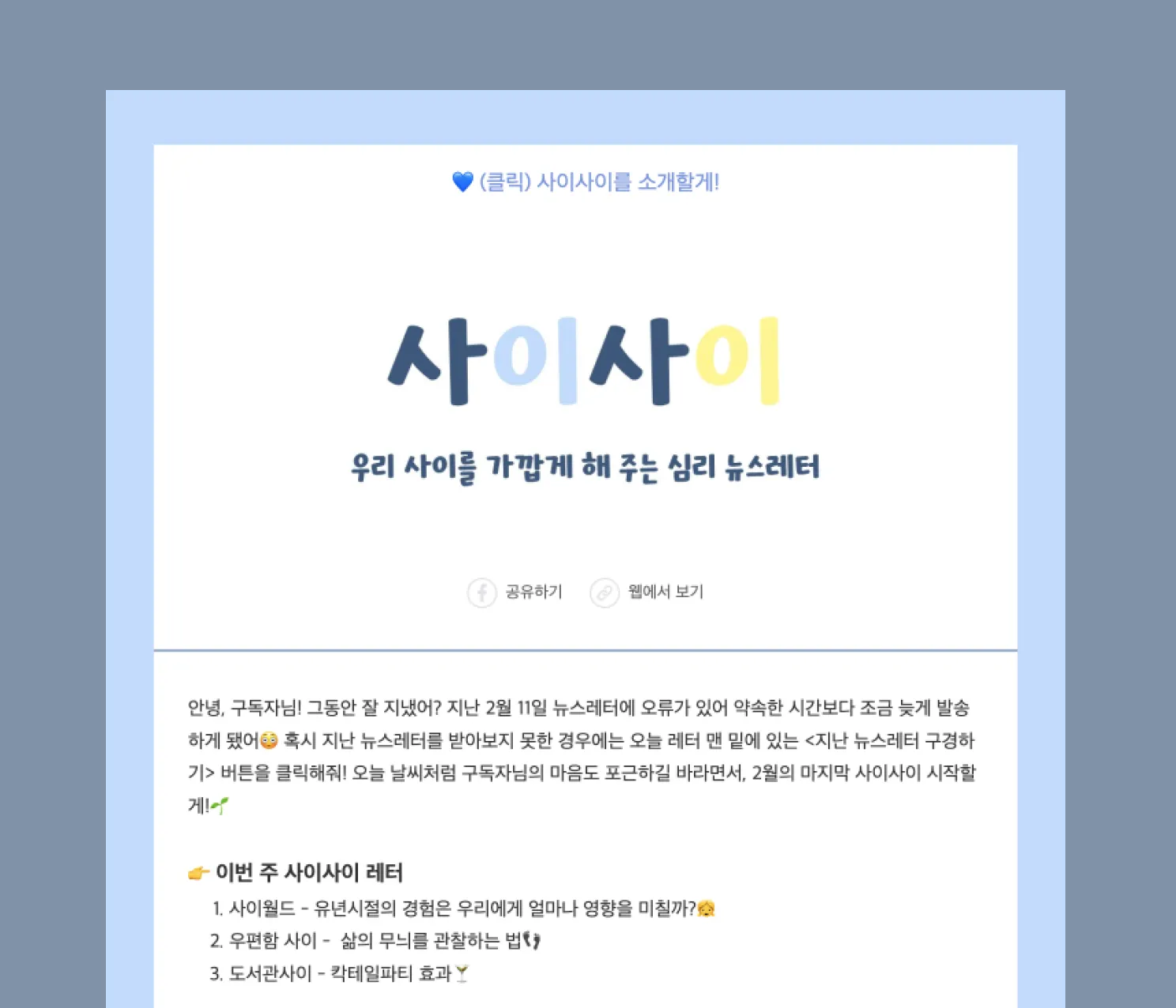 흥미로운 심리 이야기를 통해 사람간의 연결을 돕는 <사이사이> 뉴스레터
